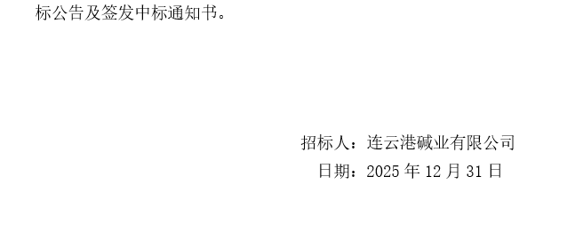 連云港堿業有限公司外貿散雜貨貨運代理服務商招標中標候選人公示